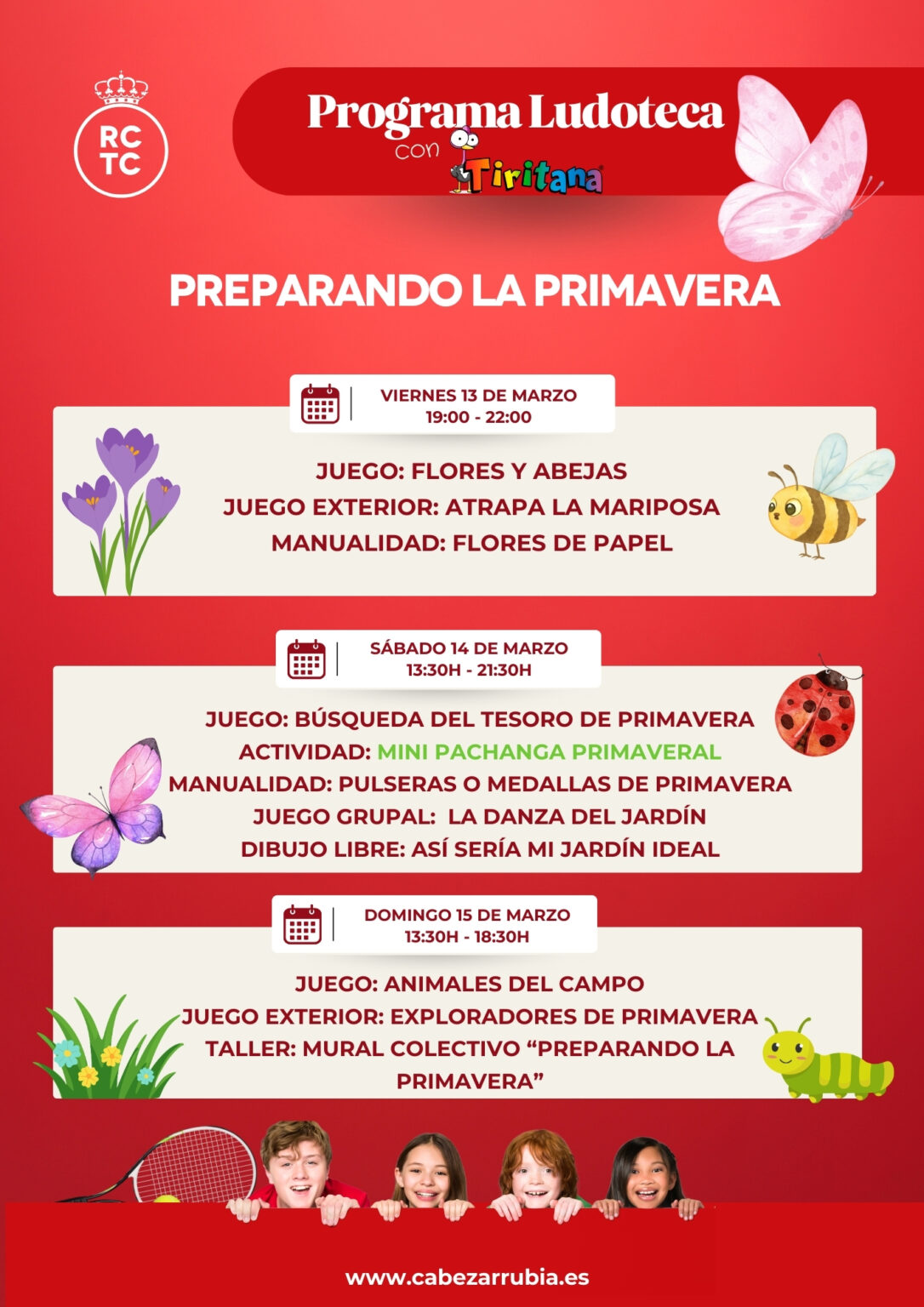 Desde la ludoteca del Real Club de Tenis Cabezarrubia os compartimos la programación de este fin de semana, en el que comenzaremos a preparar la llegada de la primavera con juegos, actividades al aire libre y talleres creativos.